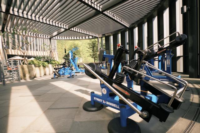 An open-air fitness space for refreshing strength workouts in a relaxed outdoor setting