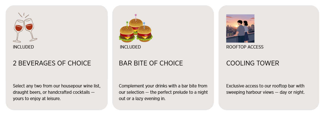Perched high above Tanjong Pagar, the Cooling Tower Rooftop Bar offers one of Singapore's most breathtaking vantage points — an open-air retreat with sweeping views over the harbour and the shimmering waters beyond. Sip your beverage of choice as cargo ships drift lazily across the horizon and the city's southern skyline glows in the distance. As dusk deepens and the harbour lights begin to dance on the water, there is simply no better place to exhale, unwind, and ease into a truly unhurried weekend.